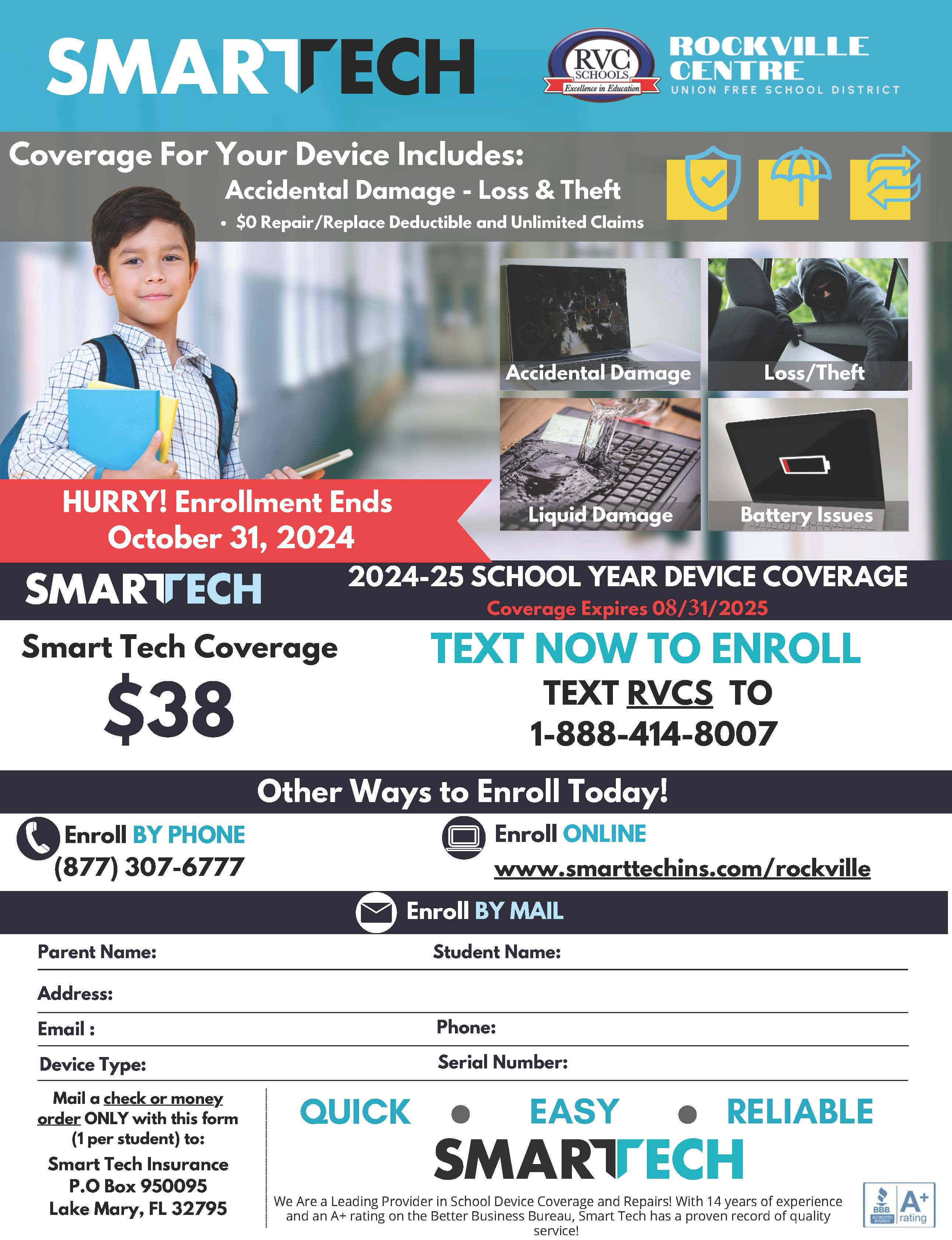 Give yourself peace-of-mind… purchase Chromebook insurance for the year!